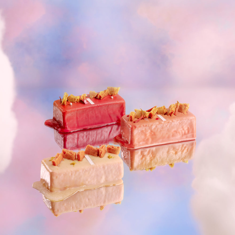 獨特多層次口感的費南雪蛋糕,佐以酥菠蘿點綴,糕體細緻,淋醬濃郁。共 5 款口味:玫香紅莓、果香紅心、黃金檸檬、茶金焦糖、黑金可可。