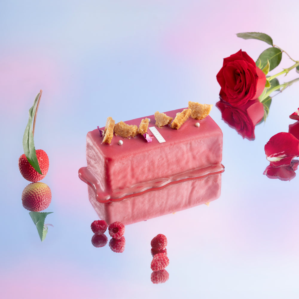 玫香紅莓:荔枝玫瑰蛋糕佐覆盆子醬與玫瑰花瓣。