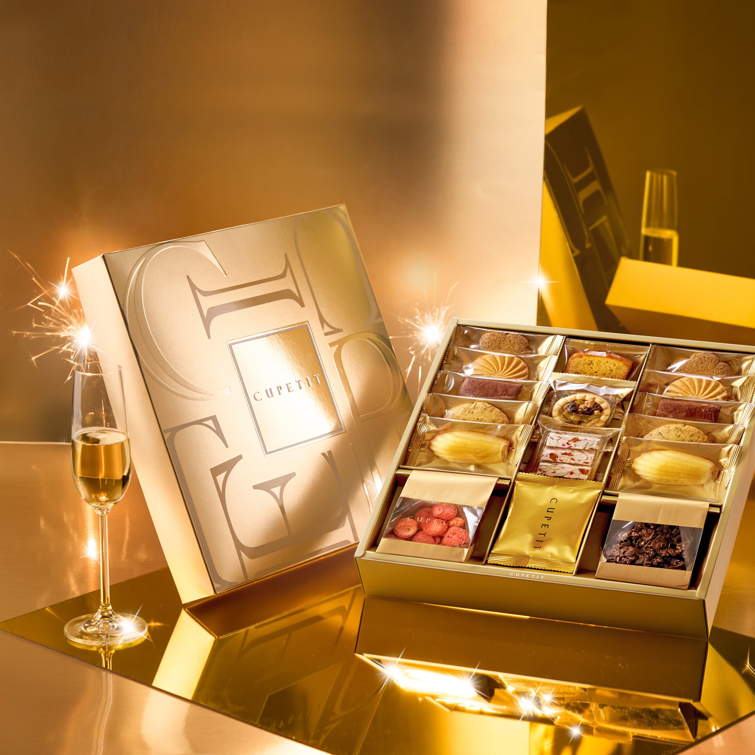 內容:英式伯爵茶餅2入、帕瑪森乾酪餅2入、山紅茶花餅2入、核桃黑巧克力2入、蜂蜜瑪德蓮、草莓甜心牛軋糖、焦糖無花果磅蛋糕、蔗香黑糖布列塔尼酥餅、巧克力米香。